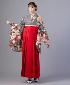 古典柄の上品さに加え、赤の袴が全体を明るく引き立て、卒業式にふさわしい華やかな印象を演出。