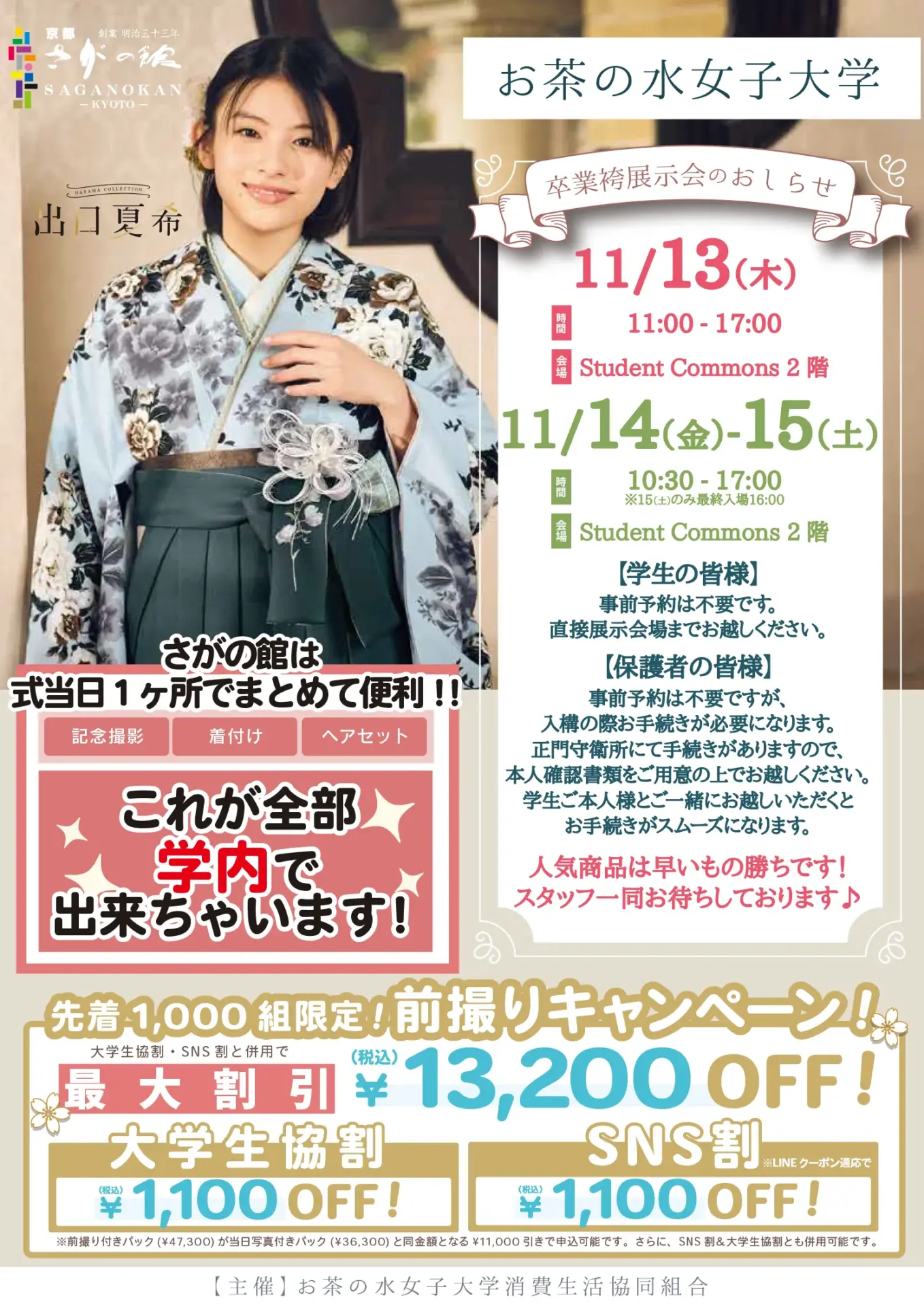 さがの館 卒業式袴 来店予約